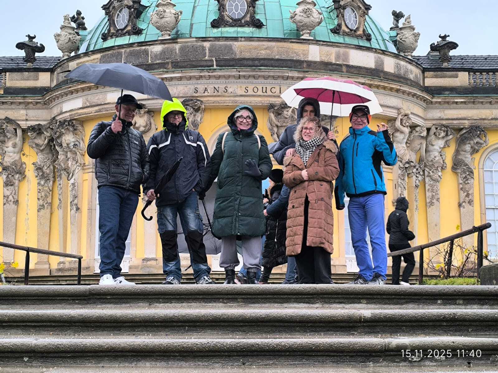 W sobotę, 15 listopada, byliśmy gotowi do wyjazdu już o 4 rano, aby wyruszyć do Niemiec i zobaczyć co „słychać”w Poczdamie i Berlinie ? Przed nami było niemałe wyzwanie – 500 km jazdy, niestety w ulewnym deszczu. Ale czego nie robi się, aby spędzić miło czas z przyjaciółmi i przy okazji coś ciekawego zobaczyć.
