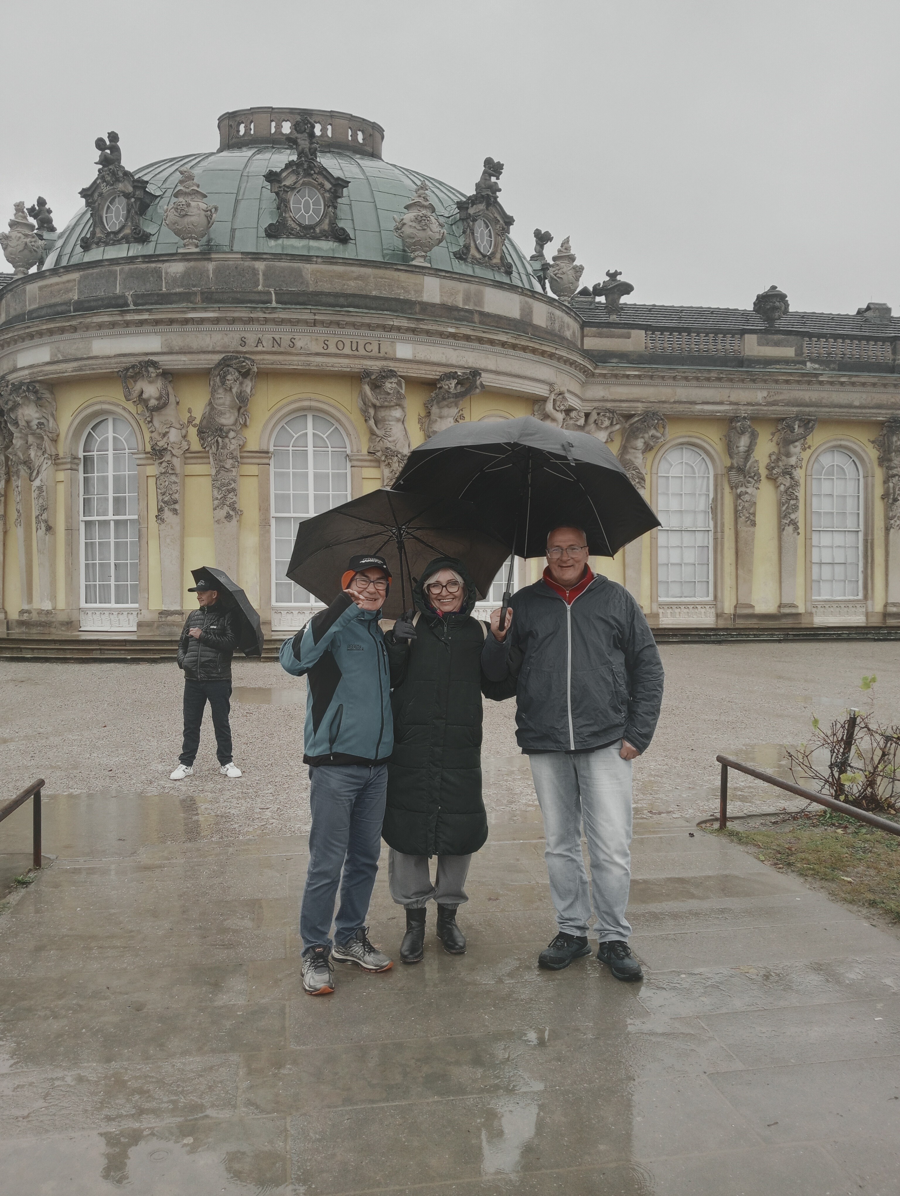 Poczdam zaskoczył nas podwójnie – przepięknym, klimatycznym, romantycznym kompleksem pałacowym Sanssouci, ale też chaotyczną, „brzydką”, zabudową z okresu komunistycznego. Dodatkowo zaskoczyła (?!) nas pogoda, która utrudniała turystyczne doznania jak tylko mogła !